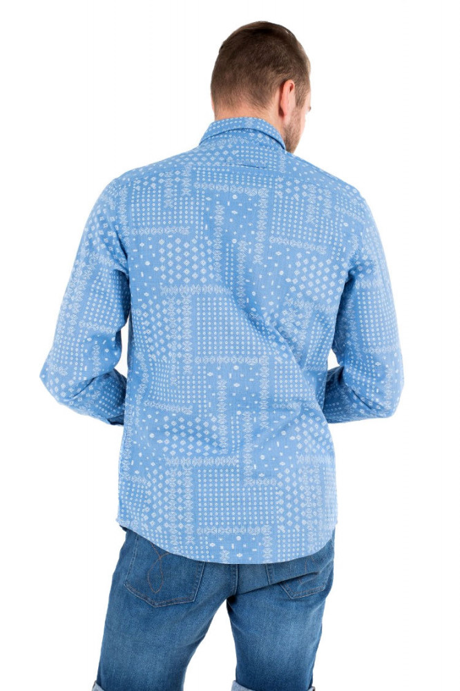 Kék színű, apró mintás, hosszú ujjú, karcsúsított fazonú férfi ing.