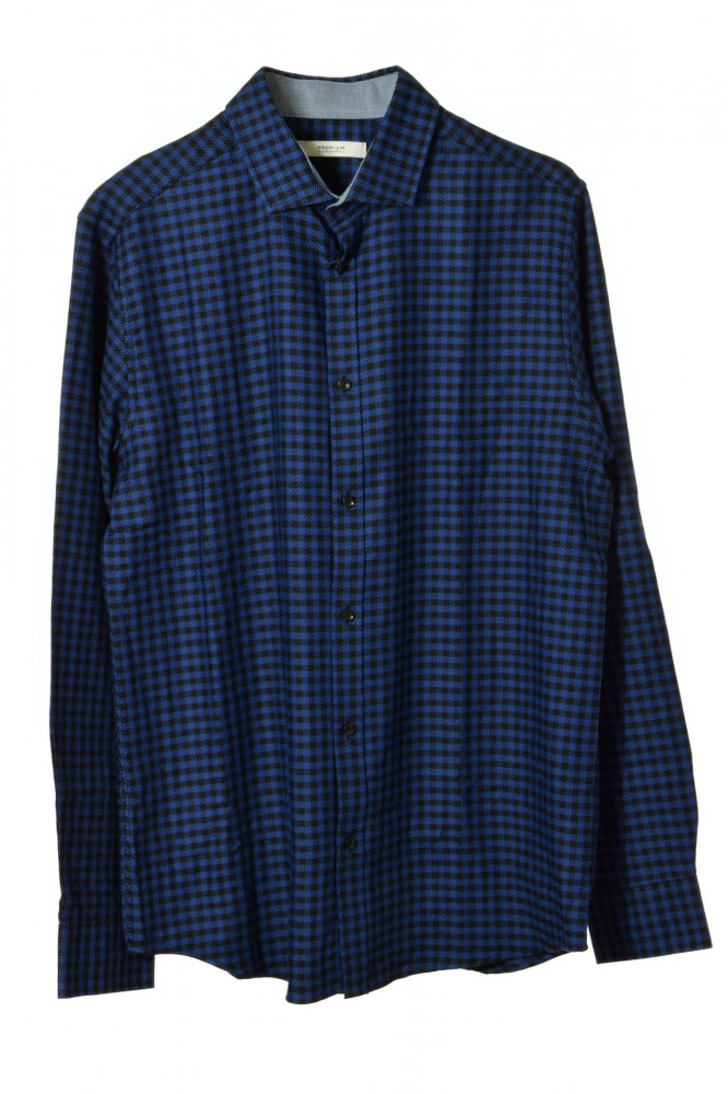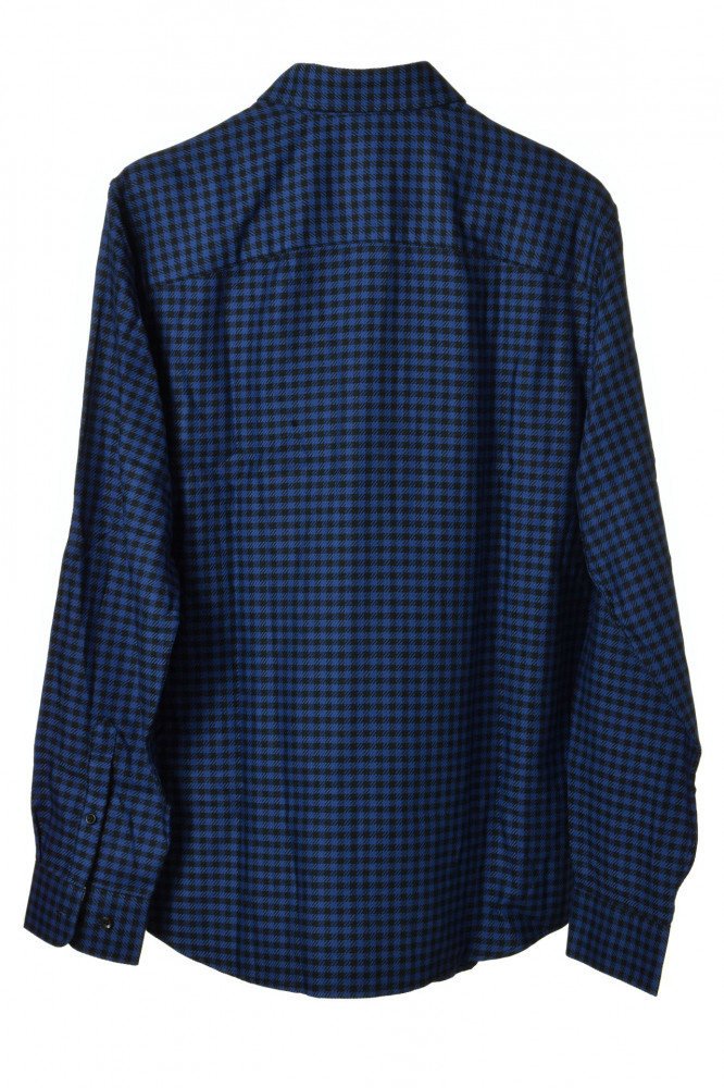 Kék és fekete mintás, hosszú ujjú, slim fit fazonú férfi ing. Vastagabb pamut szövetből készült, hidegebb időszakokra ajánlott.
