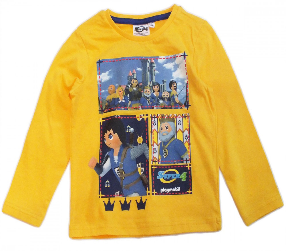 Playmobil Super 4 mintás citromsárga, hosszú ujjú fiú póló.